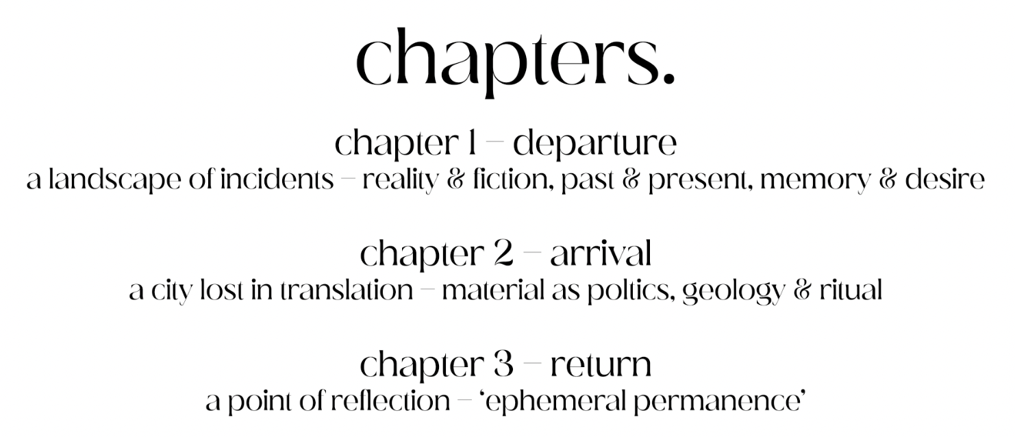 ‘for those who pass it without entering, the city is one thing: it is another for those who are trapped in it and never leave. there is the city you arrive for the first time and there is another city you leave never to return’